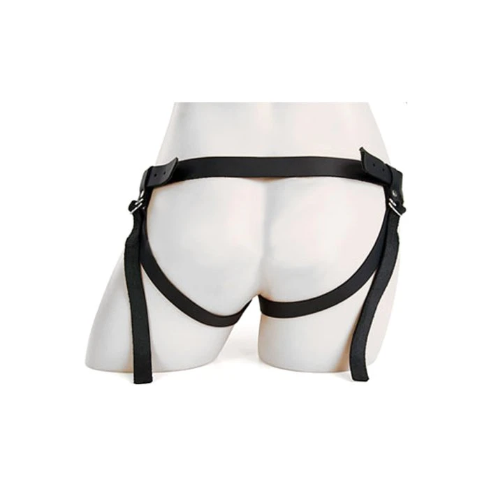 Made from lightweight leather and easily moved & adjusted hardware, the Commando harness offers multiple ways to play. Of all leather harnesses, this model uses the least material, meaning you can experience even more skin-to-skin contact! Slide the straps apart for a thigh strap-style harness, or remove a strap for g-string style thong harness. Engineered for packing and/or playing, this minimal harness can brace even the largest and heaviest dildos or packers!