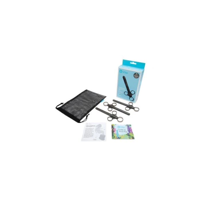 Every purchase of the Lube Applicator Set comes with a discreet travel bag for adventures on-the-go. The set also includes the signature b-Vibe Guide to Anal Play- which covers popular topics on anal hygiene, how to choose the best anal lube, and more!