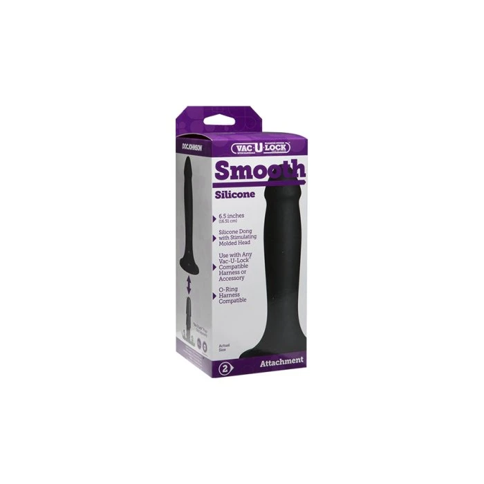 Satisfy your need for a delicious ridged rip and deeper A-spot play with the Vac-U-Lock Smooth Silicone Dildo Attachment by Doc Johnson. Designed to be used with the Vac-U-Lock Power Banger, this dildo locks into the system to offer a smooth ride. This dildo has a smooth shaft and a pronounced head that feels delicious against the g-spot or prostate as well as your openings as you thrust in and out.