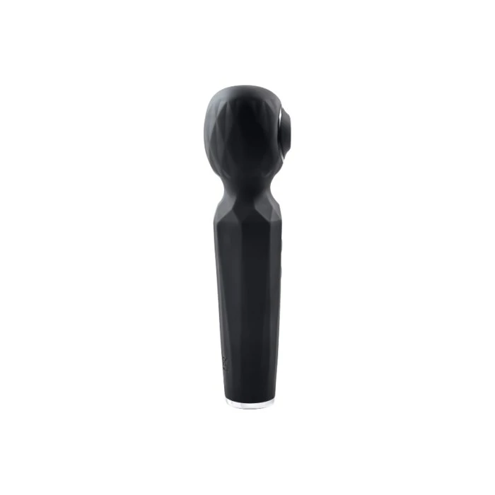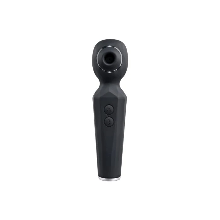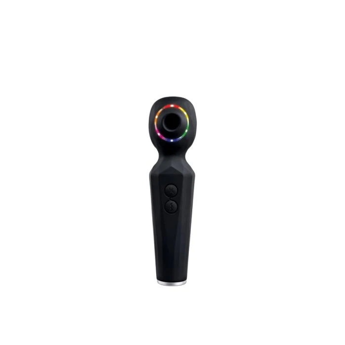 Looking to add a unique pleasure combination to your pleasure arsenal? Look no further then with this dual function wand that vibrates powerfully and sucks gently. The two motors can be independently operated and provide 8 speeds of strong wand vibration and 5 speeds of sensual suction. And remember, these functions can run together or separately depending on your desire. The textured handle makes it easy to hold, and the easy to use 2-button control panel lets your hand relax so you can focus on the good sensations that send will send you right over the edge! Rechargeable, splashproof and easy to clean. Enjoy a light show while you play. The Blue, red & green lights blink in a circle around the suction mouth when in use