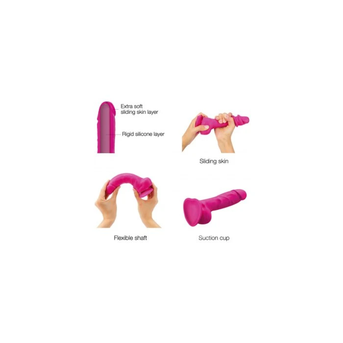 The newest innovation is the silicone sliding skin realistic dildo makes your dreams come closer to reality. Minimalistic and simple while still being sophisticated make this new realistic dildo. This product’s ultra-innovative realistic feel is exciting to touch. The dual density texture of ultra-soft and squishy silicone gives you a firm yet supple feel. Once you have the toy in your hands, the sliding skin pushes you into a world of infinite options. Let the details transport you. The head, veins and testicles are subtly visible, textured and soft, giving you a sensory experience that is truly amazing! A world of possibilities is at your fingertips, for moments of unprecedented pleasure, unmatched until now with a dildo.
