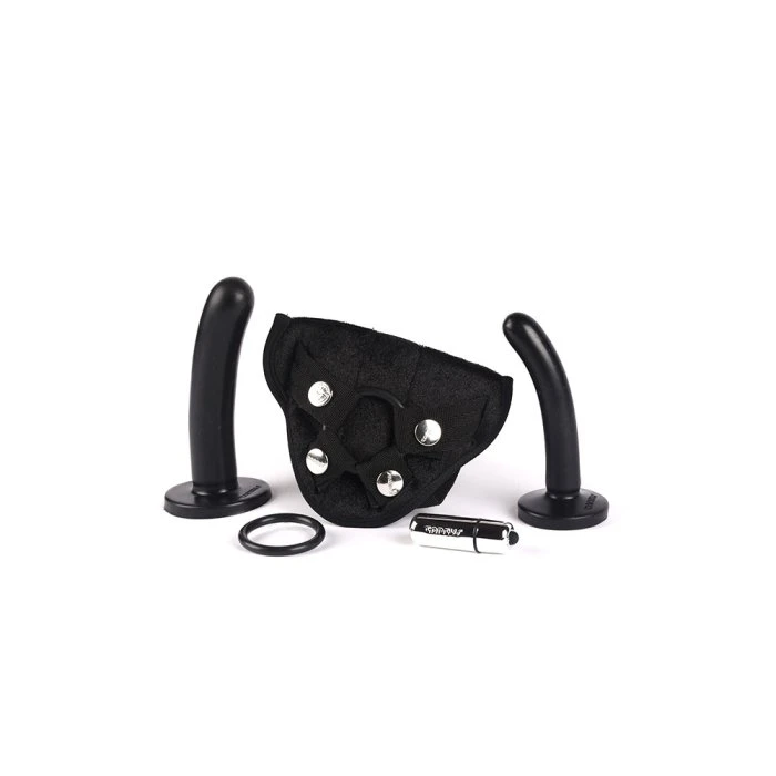 Just as the name suggests, this kit is great for anyone who is new to playing with harnesses and strap-ons because it includes everything you need to get started! This kit features a machine washable harness, two sizes of the Silk dildo (small and medium), a bullet vibrator, and an extra O-ring. This kit is designed to give you many options so you can ease into play however you’d like.Â