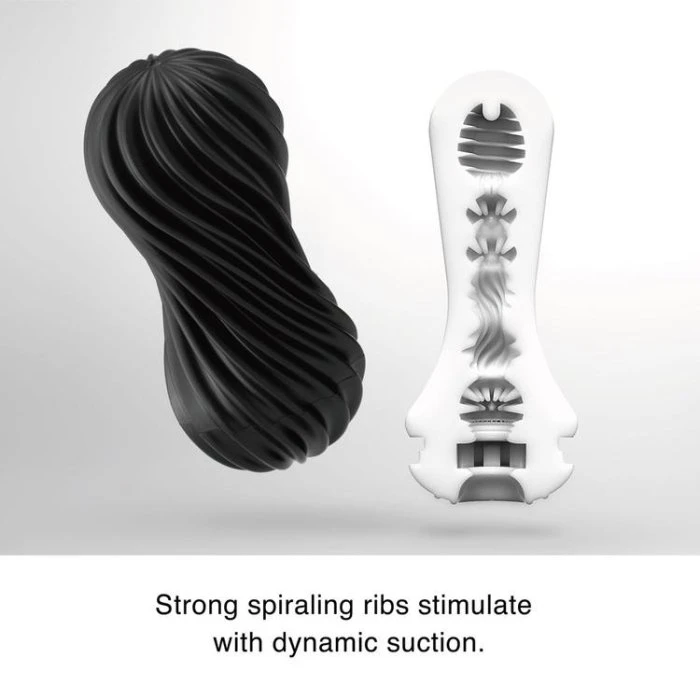 The Tenga Flex spins, sucks, and embraces you in a unique spiral-ribbed casing. Cover the air hole at the top during use, and you can directly control the suction and pressure for added stimulation. Additionally, the Flex’s malleable casing allows you to squeeze, twist and grip it in order to apply pressure however you please.