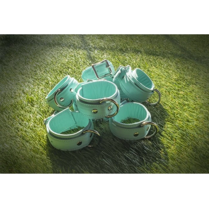 These cuffs will stop hands from wandering, while mind is sure to start roaming to new places. When the Stockroom and Zoë Ligon agreed on this delicious mint-green for our first kinky collaboration, we loved how it evokes the playful quality of kink. Blending a touch of the sweet and the smart, it reminded us of when we started to realize that sex had more flavors than just vanilla. The garment leather is soft and supple to the touch while being absolutely unforgiving about any attempts to slip free. Your skin won’t chafe or scratch, and no one will escape before time’s up! Get the full matching set that includes a collar, leash, wrist cuffs, and ankle cuffs.